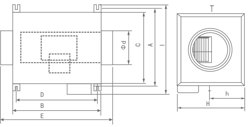 | 型号 | A | B | C | D | E | H | H | I | Φd |